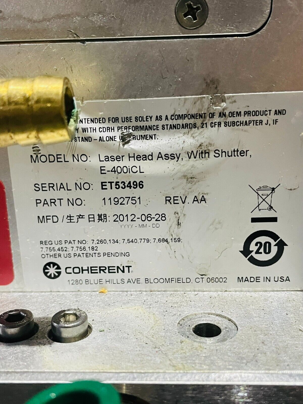 Enquire about Coherent E-400iCL Laser Head Assy w Shutter
